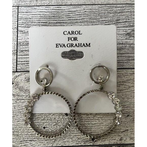 Up for sale is this pair of Carol for Eva Graham Silver Tone Rhinestone Hoop Earrings. New.