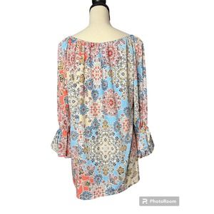 Carole Christian Tunic Size Small in Multicolored Floral Print w/Bell Sleeves