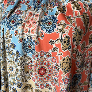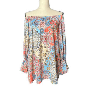 Carole Christian tunic in multicolored floral print, boatneck or open shoulder, elastic bell sleeves, size small