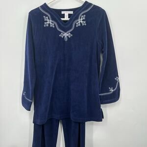 Carole Hochman 2 pc Velour Pajama Set Crop Pants Dark Blue Womens XS