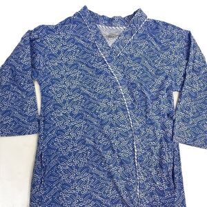 Carole Hochman Floral Robe Cotton Medium M Blue White Wrap NO Belt Long Sleeve