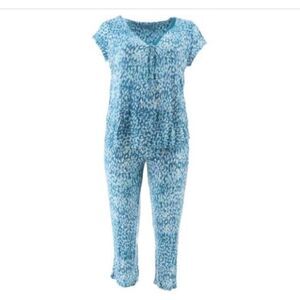 Carole Hochman Satin Trim 2-piece Short Sleeve Top & Bottoms Blue Pajama Set