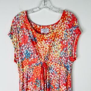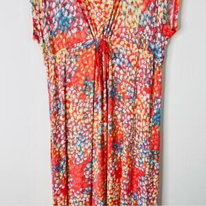 Carole Hochman peach pink white floral cinch maxi nightgown dress large