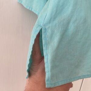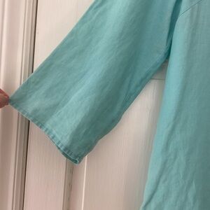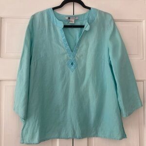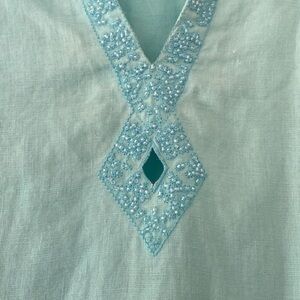 Carole Little 100% Linen Blue Beaded Three Quarter Sleeve Blouse Size Large