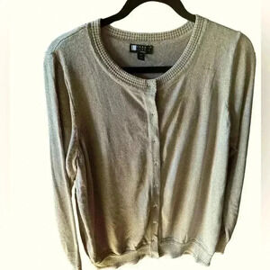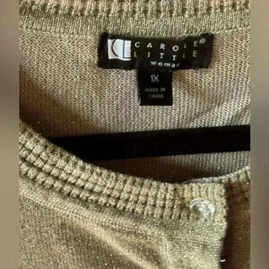Carole Little 1X gold metallic cardigan sweater. NWOT. Faux crystal buttons