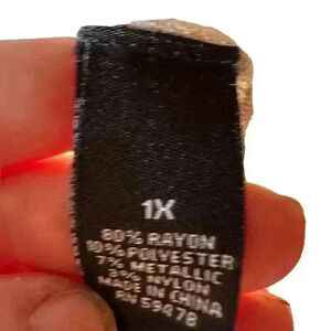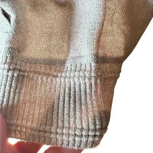 Ribbed & striped neckline and cuffs. Metallic threads give furry appearance. Very pretty! Pit to pit approx 24” , length 24”
