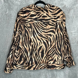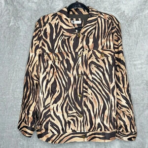 Carole Little 3X Shirt Top Brown Zebra Print Button Up Long Sleeve Collared