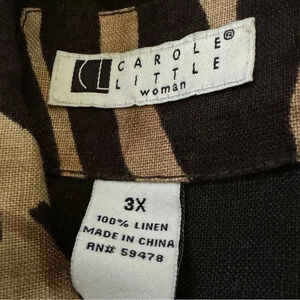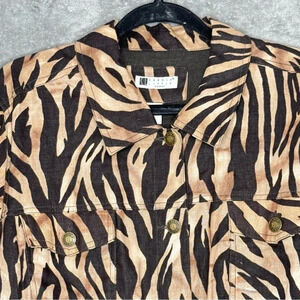 Carole Little 3X Shirt Top Brown Zebra Print Button Up Long Sleeve Collared 100% Linen