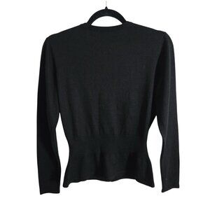 Carole Little Black Floral Embroidered V Neck Knit Button Detail Sweater Size S