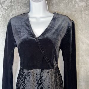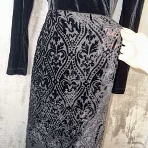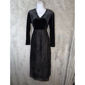 Carole Little Black Velvet Burnout Midi Maxi Dress Size 4 Gothic Elegance Formal