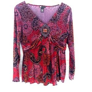 Carole Little - Long Sleeve Boho Top Blouse, Size Medium