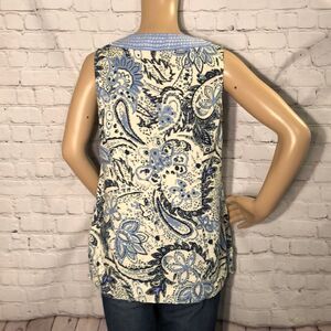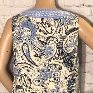 Carole Little Blue Paisley Sleeveless Top Linen L