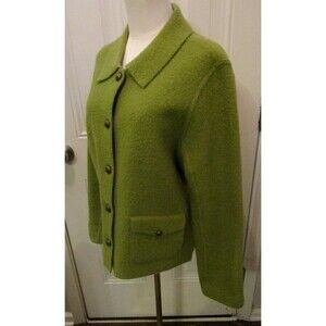 Carole Little Jacket Vintage Green 100% Wool Metal Button Front Pockets Size L