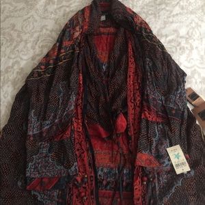 Beautiful funky jacket with beaded detail in the front. Layered, beaded detail on sleeves. Lovely. Sz. 14
