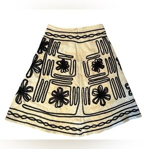 Carole Little Ladies Linen Embroidered Skirt Beige / Black Size 10