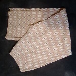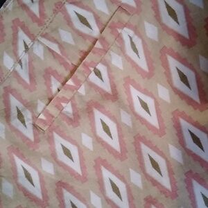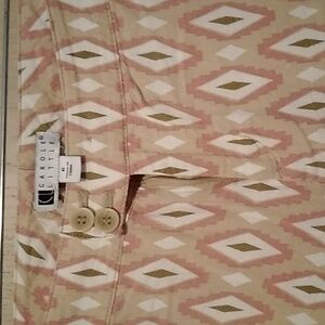 %55 Linen, tan, pink, brown and white colors, size 6(M), waist 17", inseam 31", Length 39", ankle 9.5", excellent condition