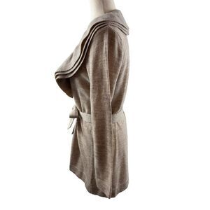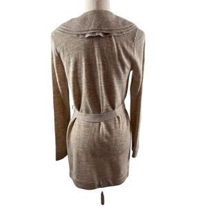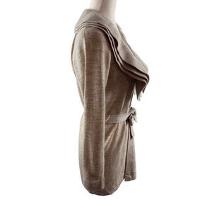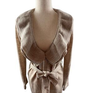 Carole Little Merino Wool Ruffle Shawl Collar Belted Cardigan Sweater Small Tan