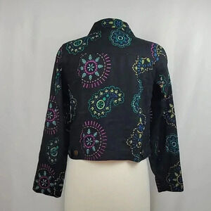 Carole Little Petite Embroidered Linen Jacket Black Size PM