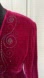Carole Little Petites velvet jacket with beaded detailing. Size 2. Merlot burgundy - very deep in color. One button closure. Small shoulder pads for structure. Material is part silk. Small discoloration on the interior of jacket and small discoloration on left shoulder - minimal! Such a stunning vintage piece and perfect for making a statement