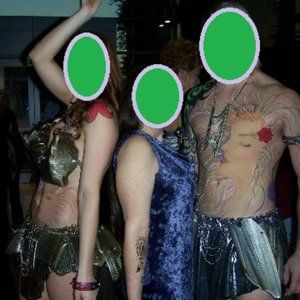 Carole Little Brand purple dress with purple nylon lining, size 6, purple, laser-cut gown. Laser cut patterns appear to be leopard print and exotic flowers. Used, very good condition. Purchased approx. early 2000s (to the best of my knowledge), worn 2-3 times. Model is 5'2", long-waisted. Materials: "Made from imported fabric - 82% Rayon, 18% polyester, lining 100% nylon. "Dress cut 46018, 945655Y." Dress is not backless, shoulders / arms exposed but upper back will be covered by the dress.
