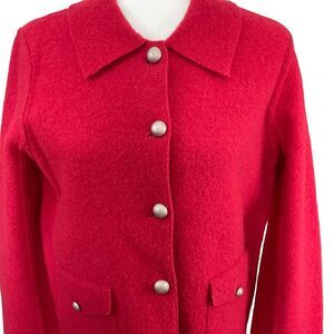 Carole Little Red Boiled Wool Button Front Cardigan Jacket Size S