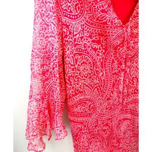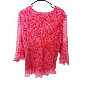 Carole Little Sheer 100% Silk Top w Sequins Layered Ruffled Sleeves SZ 1X
