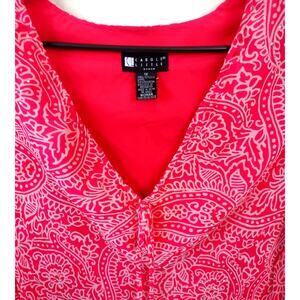 This Layered Silk Sheer Top by Carole Little is in used, but good Preowned Condition. No tears or defects. 1 Bow tied on front. Needs Dry Cleaning.