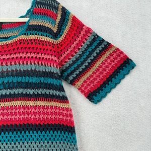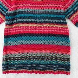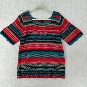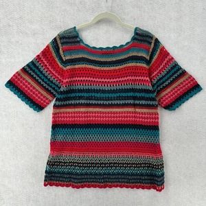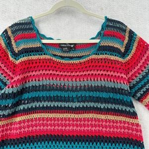 Carole Little Short Sleeve Sweater Womens 2X Rainbow Colorful Granny Open Knit