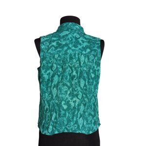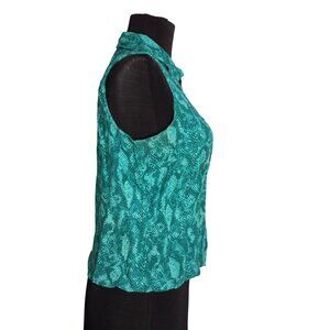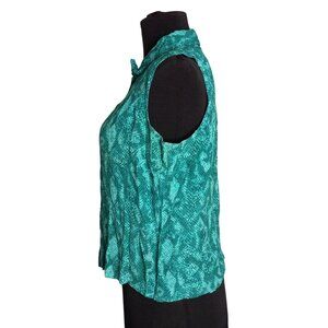 Carole Little Size M Blouse Womens Sleeveless Button Up Teal Snake Print Vintage