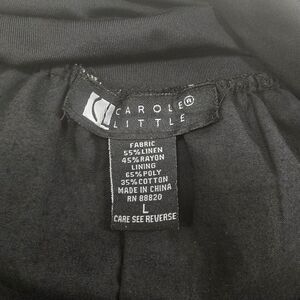 This Carole Little skirt is a must-have for any fashion-forward woman. The classic black and cream polka dot pattern is timeless, while the flared style and elastic foldover waist add a touch of modernity. Perfect for both casual and cocktail occasions, this knee-length skirt is made from a luxurious blend of rayon and linen, ensuring comfort and durability. The skirt is lined and features a full twill fabric type, making it suitable for all seasons. Whether you're going for a bohemian or retro look, this skirt is the perfect addition to your wardrobe. Available in size L, this Carole Little skirt is a great investment piece for any woman's wardrobe.