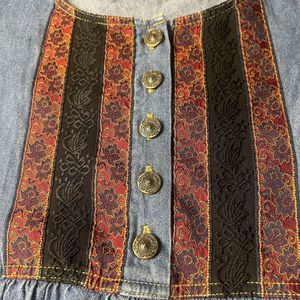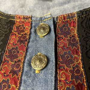 The denim fabric gives it a rustic, country feel, while the long sleeves and