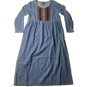 Carole Little Sport Dress 16 Blue Denim Modest Mom Amish Maxi Embellished