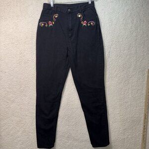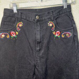 Carole Little Sport Embroidered Accent Floral Black Denim Jeans Women's Sz 10