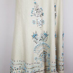 Carole Little Turquoise & Silver Beaded Sequin Midi Linen Skirt Ladies Size 6