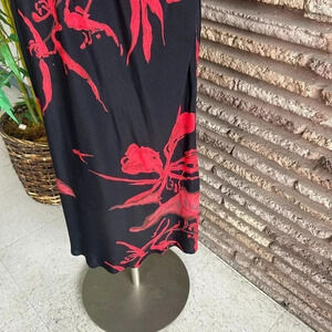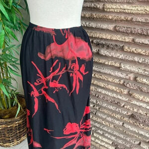 Carole Little Vintage 90s Black And Red Floral Print Maxi Skirt Size 4