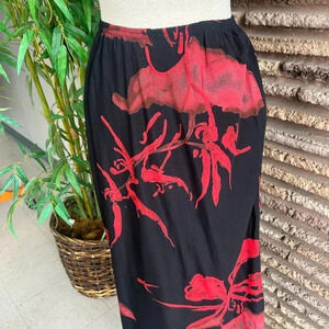 Vintage 90s red and black print midi maxi skirt