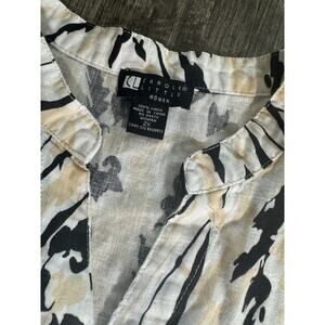 Carole Little Vintage Plus Size 2X 100% Linen Button Up Blouse Animal Print Y2K