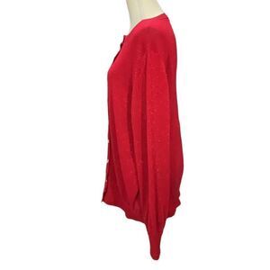 Carole Little Woman Red Metallic Sparkle Clear Button Down Cardigan Sweater 3X