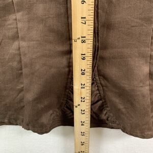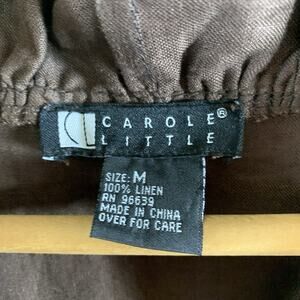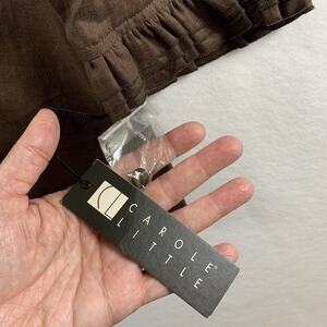 Carole Little Womens 100% Linen Ruffle Button Top Sz M Brown Coastal Boho New