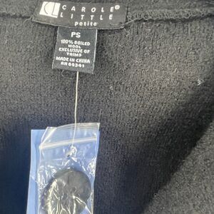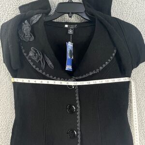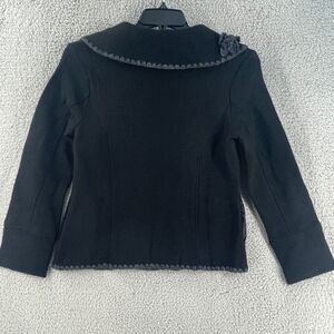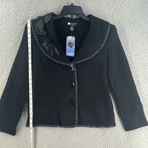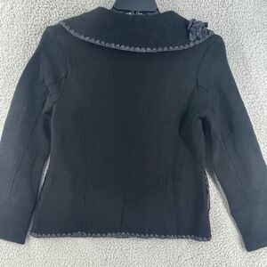 Carole Little Womens Blazer Cardigan Jacket Boiled Wool Boho Embroidered Black S