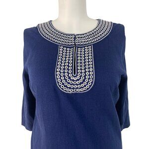 Carole Little Women’s Blue 3/4 Sleeve Top Embroidered Neckline Split Hem Sz 1X