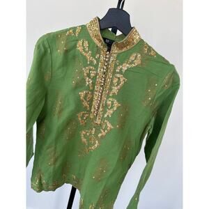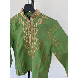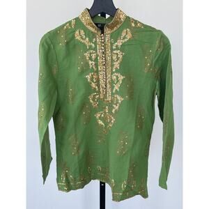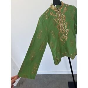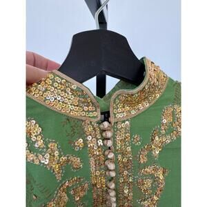 Carole Little Women’s Green & Gold Embroidered Sequin Blouse Size 4
