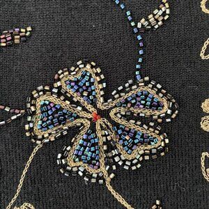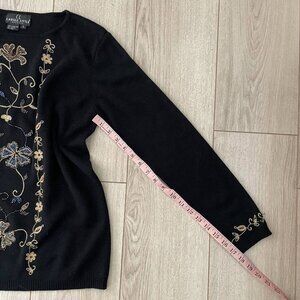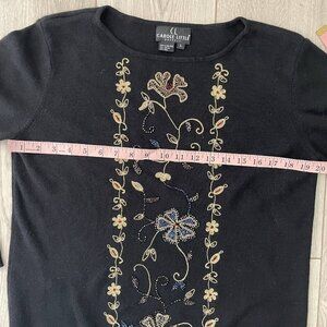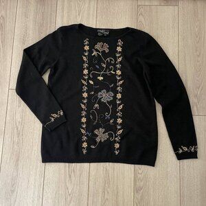 Carole Little Wool Beaded Embroidered Knit Sweater Women Size Large Black Floral