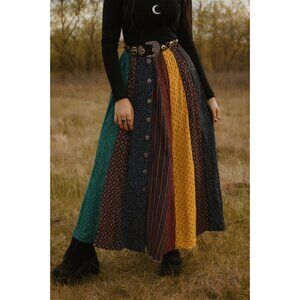 Carole Little button down color block patchwork witchy whimisgoth maxi skirt 16