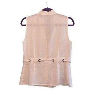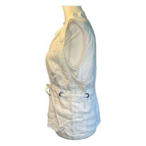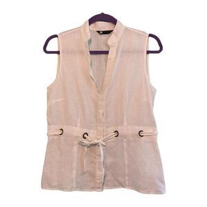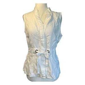 Carole Little Linen Button Down Shirt White Sleeveless Grommet Detail Vest S