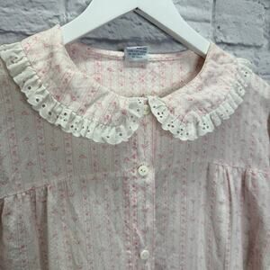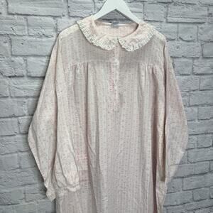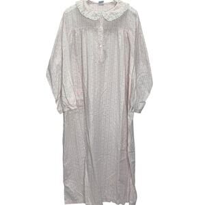 Carole Pink Stiped Long Sleeve Nightgown Size XXXL 3XL Ruffles Foral Prairie