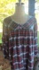 Pre-owned with light wash wear. The crochet trim at the left neckline and front right hem came undone. Mended by sewing. Underside of both sewing repairs shown in photos. There is some writing on the label that cannot be seen while wearing.