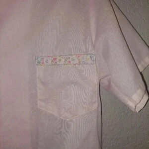 Carole Vintage Polyester Cotton Size 32 Small Pajamas Pink with Floral Accents. Pants elastic waist snap side button closure.