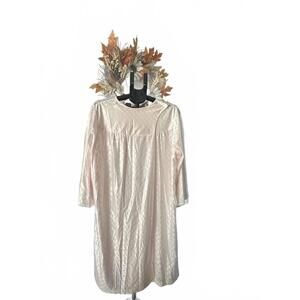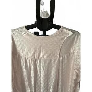 Elegant vintage style women's nightgown by Carole, made in the USA. Crafted from 100% nylon with a subtle checkered pattern and delicate lace trim. Features long sleeves and a comfortable loose fit, perfect for a restful night's sleep. It has an opening in the back (see pictures) with a wrap around design. There are buttons on the back that would make it easy if someone has to help you get dressed. Size XXL for a relaxed and comfortable wear.