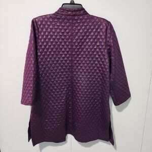 Carole Wren 3/4 Sleeve Open Front Quilted Purple Long Duster Jacket - Large